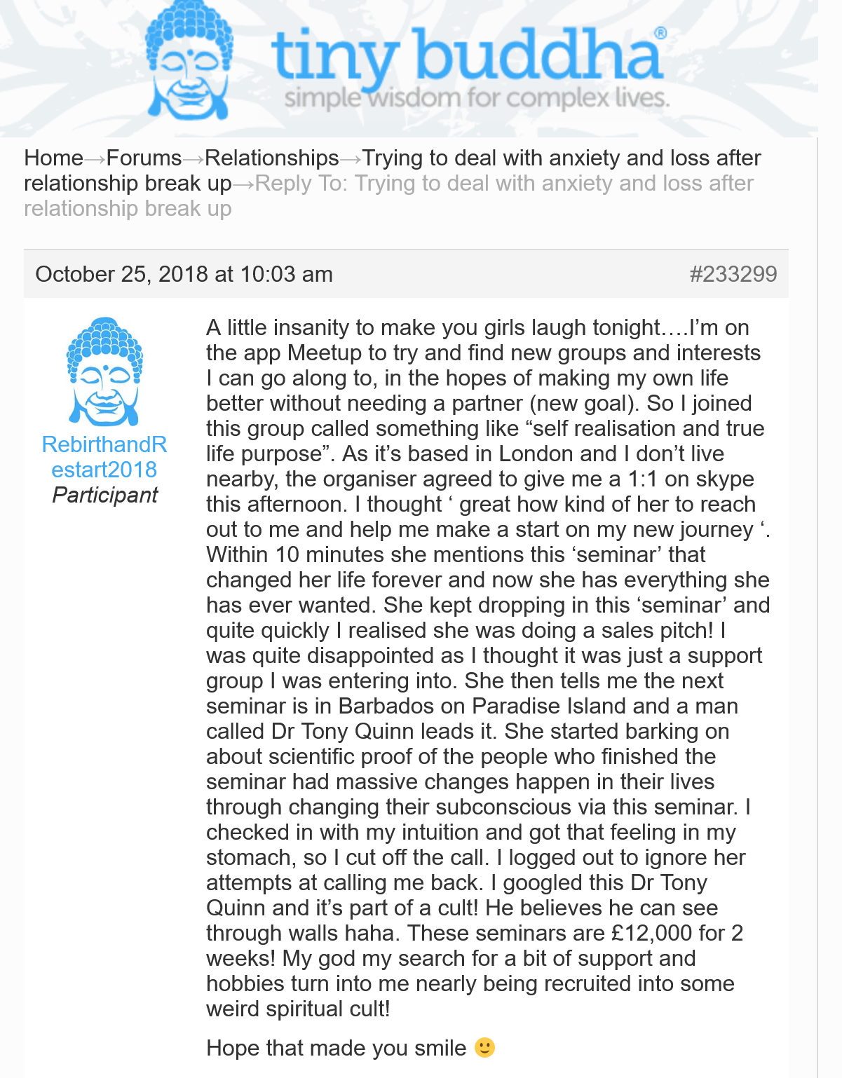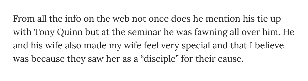 A member of these groups has been known to target those who show an interest to attempt to lure them to the EDUCO Seminar at a cost of £12,000.
