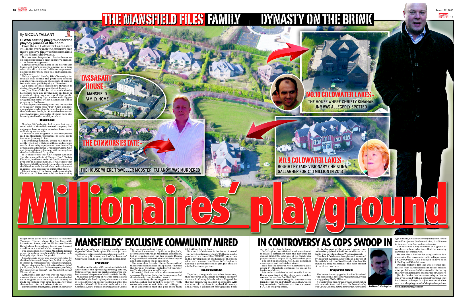 The Sunday World first reported on the connection between O'Callaghan and Mansfield Jr in 2010