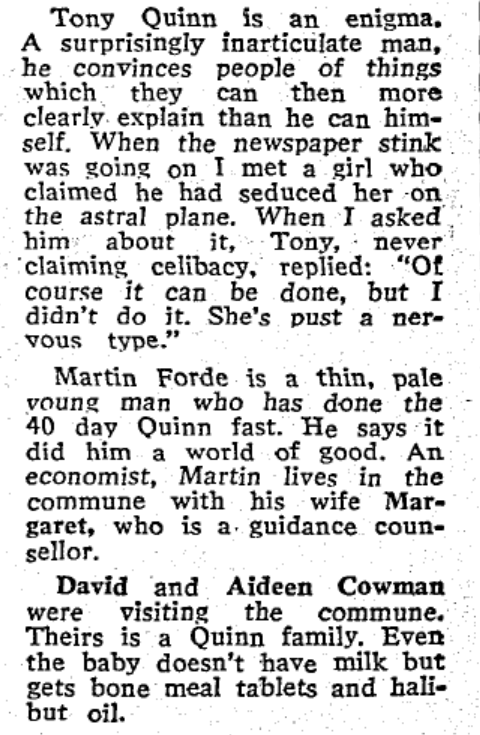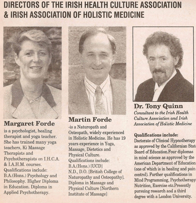 Margaret and Martin Forde head the family, and are known to be long-time followers of EDUCO Cult-leader "Dr" Tony Quinn; first reported as followers 50-years ago in the Sunday Independent: