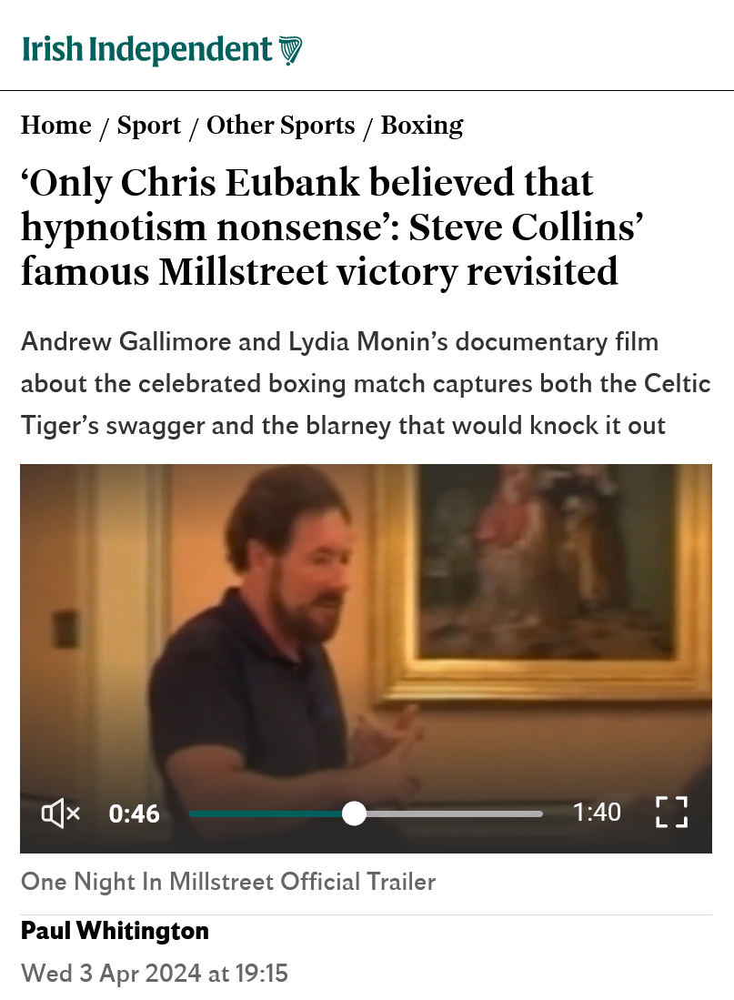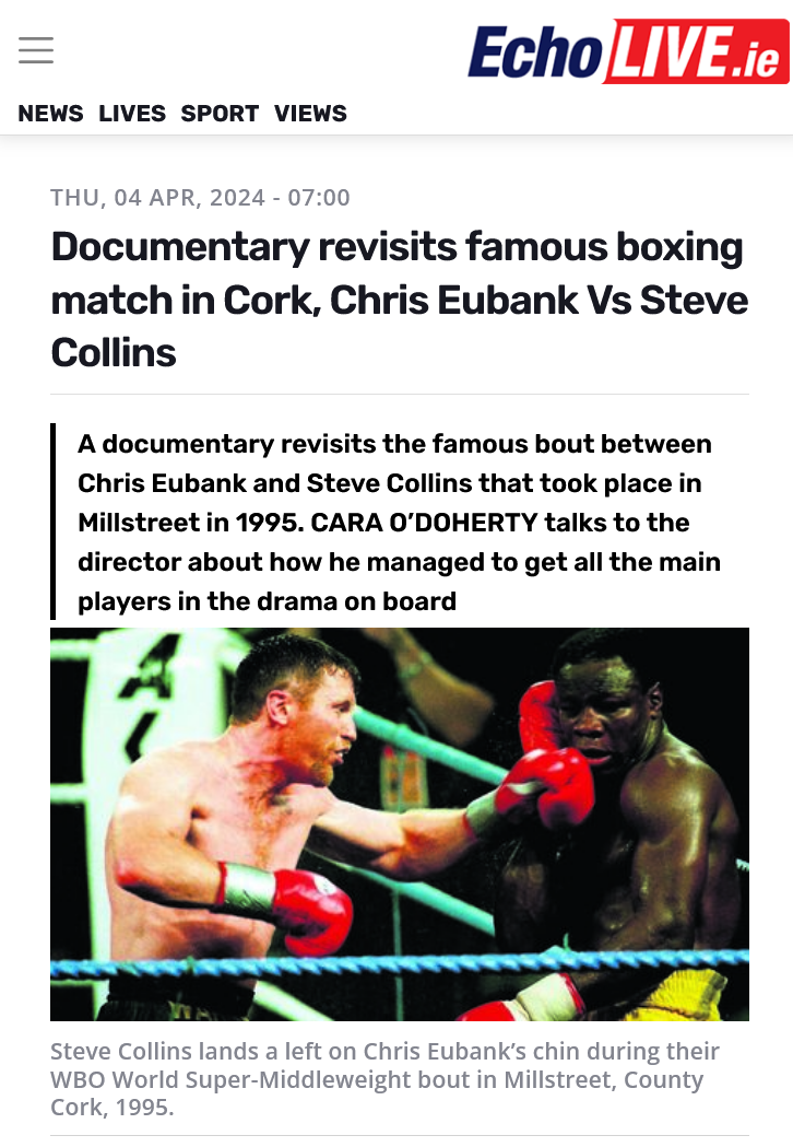 The film features EDUCO Cult-leader "Dr" Tony Quinn and tells the story of the 1995 WBO super-middleweight fight between Steve Collins and Chris Eubank.