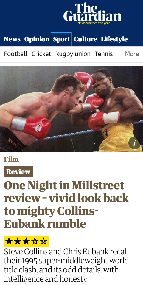 He commented on how the film glossed over "Quinn’s other activities, which are interesting" beyond the fairy-tale of the Collins v Eubank fight
