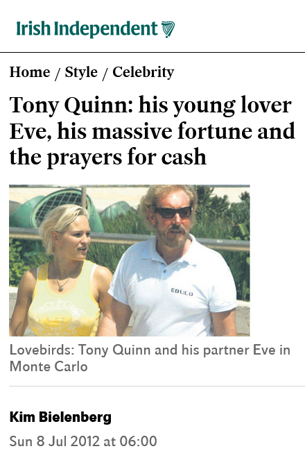 Across the words "Quinn’s other activities" the review had linked to a 2012 article published by the Irish Independent.