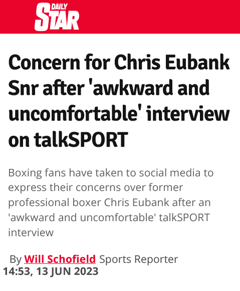 In June 2023 concerns were raised about Eubank regarding his appearence on another radio interview, and calls were made for those around him to look after him.