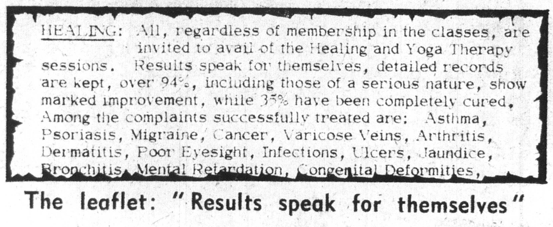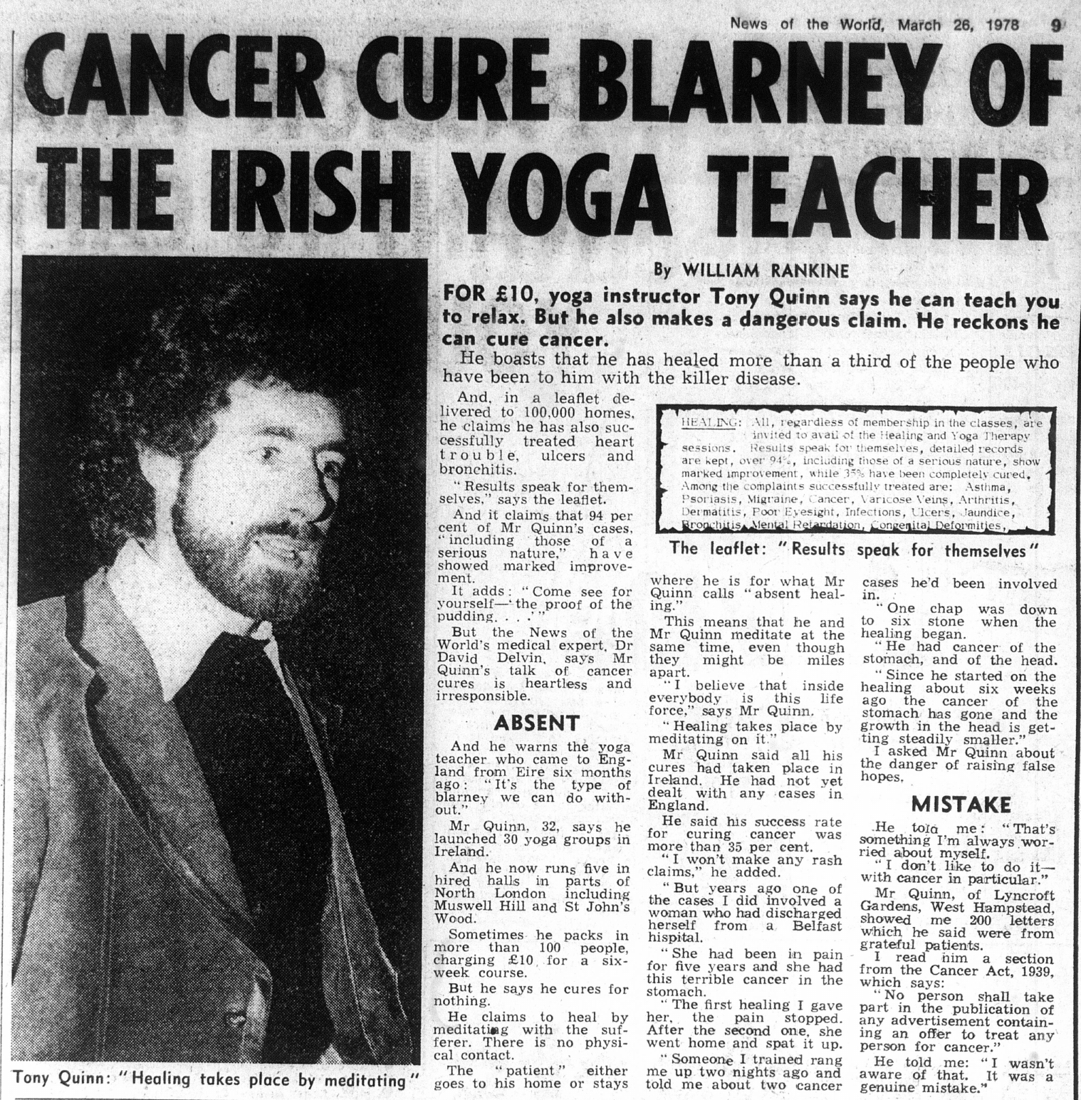 "Cancer Cure Blarney of the Irish Yoga Teacher", News of the World, by William Rankine
