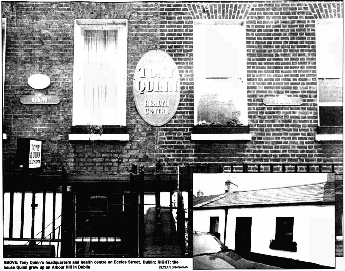 SOMETIME between the late 1980's and early 1990's, Tony Quinn - former apprentice butcher, former body-builder, former yoga guru - reinvented himself. Armed with his doctorate, and later his masters, he devised the 'Educo' system, which he described as new mind technology. His "mind-training" of boxer Steve Collins when he became world champion gave the Educo system a huge - and continuing - advertising boost, though Collins wouldn't share Quinn's view of his role. "He was one of many people who helped me on the way. He was useful for a little while. I used a couple of hypnotists to help me focus. In my opinion, the best of them all was Tony Sadar," says Collins.