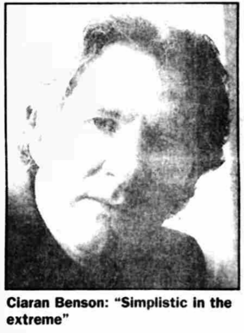 Benson, the head of the psychology department in University College Dublin, was already familiar with Tony Quinn's philosophies before he was approached by this newspaper and had this to say after perusing extensive material on Quinn's Educo system, including the Educo tapes. "I have read all the documentation supplied by you and on foot of it, whatever persuasiveness Mr Quinn has, it has nothing to do with his grasp of psychology. I found it simplistic in the extreme and without any acceptable research support."